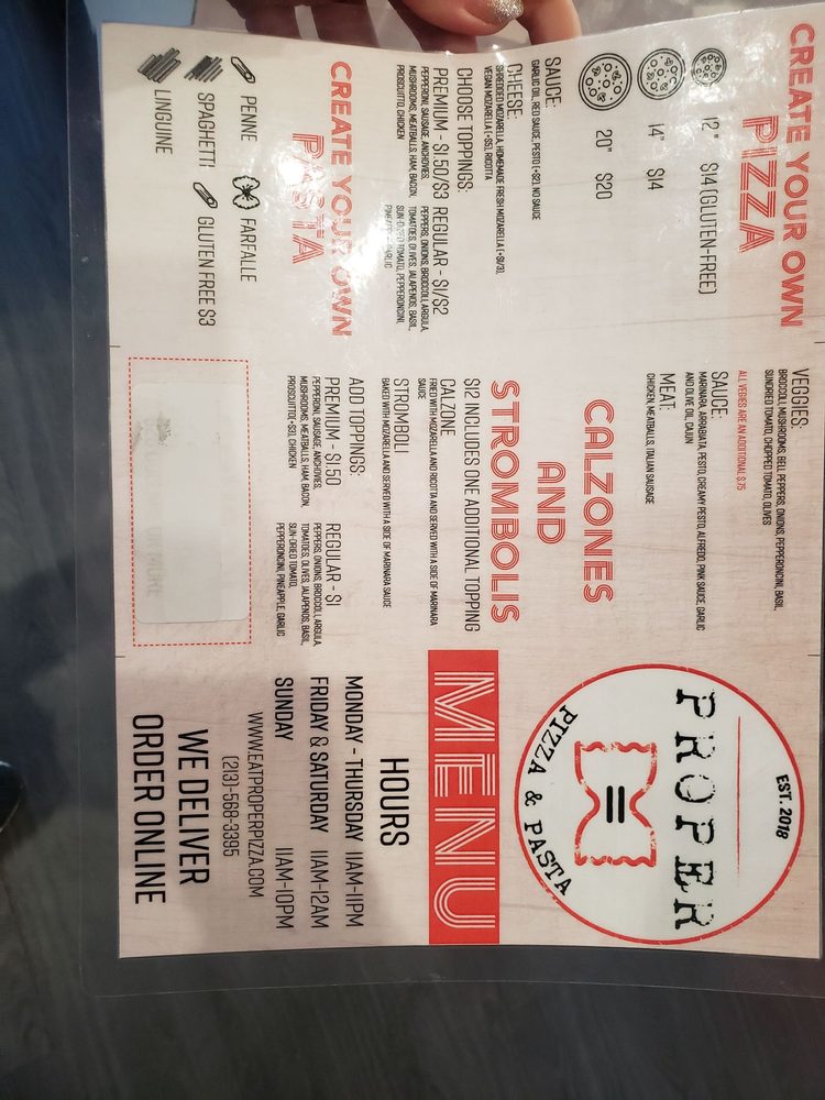 "Proper Pizza and Pasta is a trendy Italian spot in Los Angeles that offers a variety of mouthwatering dishes. The menu features classic appetizers like meatballs, fried mozzarella, and garlic knots, perfect for sharing. Crispy wings are also a highlight, available in bone-in or boneless options. Their salads, like the Caesar and house salads, are fresh and flavorful. The restaurant provides a range of amenities, including reservations, delivery, and catering services. With vegan and vegetarian options, it caters to all dietary preferences. The casual yet hip atmosphere, complete with outdoor seating and free Wi-Fi, makes it an ideal spot for groups or families. Proper Pizza and Pasta truly embodies the essence of delicious Italian cuisine with a modern twist."